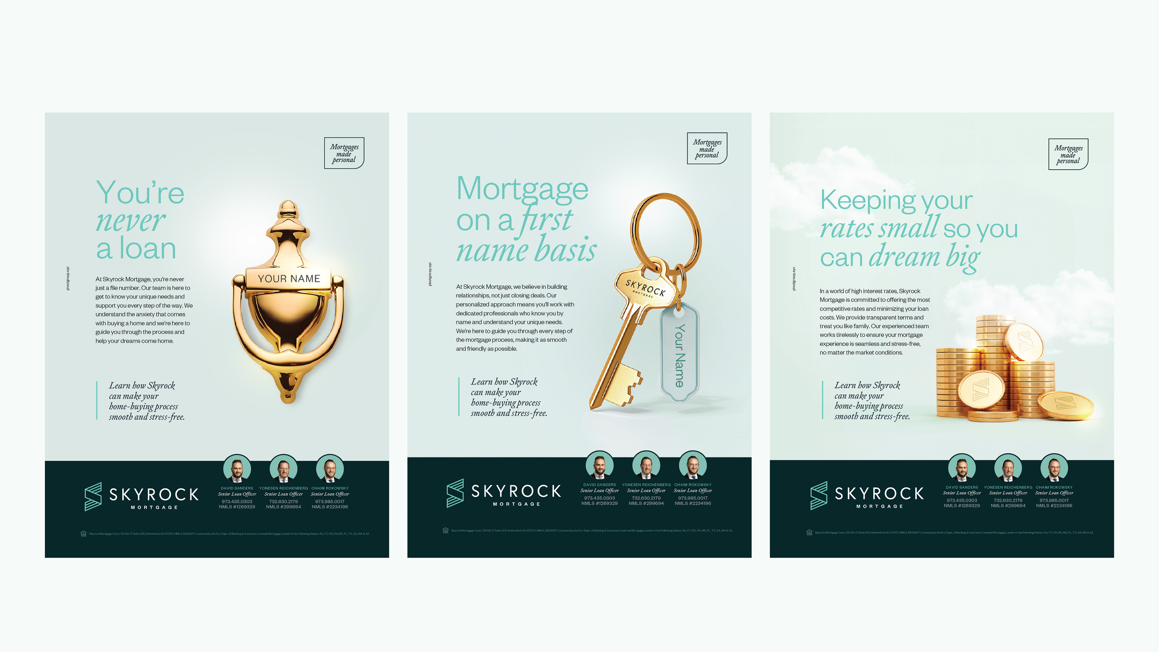 We developed a campaign rooted in their core mantra, mortgages made personal. Each visual incorporated a personalized element while maintaining a clean, elevated look. Gold accents were used throughout to bring a sense of sophistication and distinction, allowing the campaign to feel both refined and relatable.